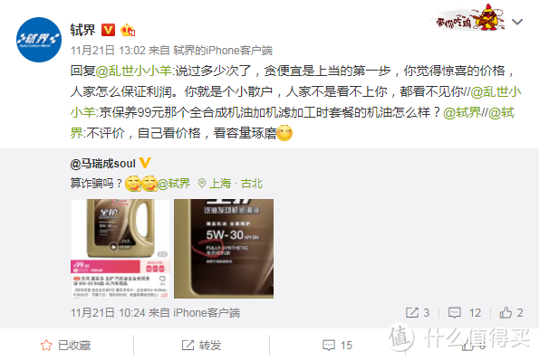 前有张大妈在孜孜不倦的推送这个京东的99元全合成机油“京保养”,后有家里的买菜车也该年检了,就想着冒险试一下,如果不行受损也小,万一要是行就给大嘀嘀也整一套,岂不美哉。毕竟这价格包含着全合成机油,还有工···
